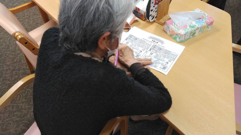 2025年10月24日 / 最終更新日時 : 2025年10月24日 allway 最新情報 | 梅ちゃんの湯 脳トレ|オールウェイ梅ちゃんの湯 梅ちゃんの湯では頭の体操として、間違い探しなどの脳トレのレクリエーションを実施しています。頭の体操だけではなくて集中力もつきますよ!