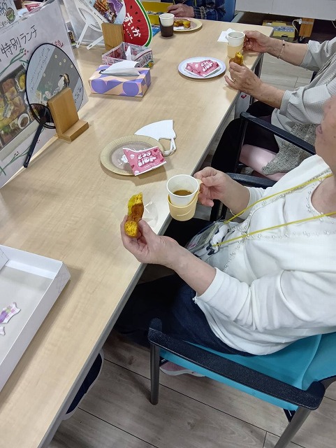 今月のおやつレクリエーションでは、秋の味覚「お芋のドーナツ」を堪能しました。
