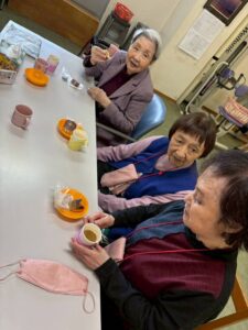 オールウェイオリジナルの“長生き体操”を、泣き笑いしながらみんなで楽しみました。