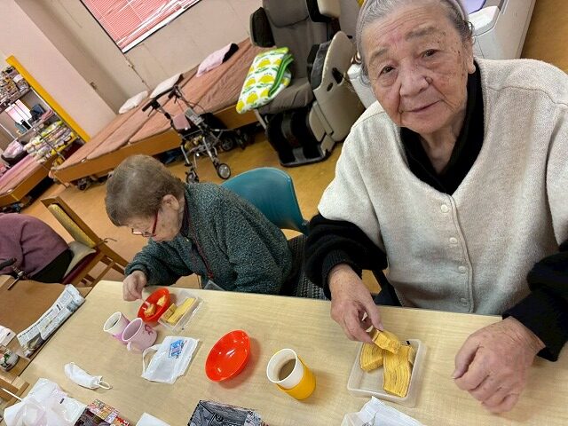 1月のレクリエーションでは、静岡県浜松市で全国的に有名な「治一郎」のバームクーヘンを使ったおやつレクを開催しました。